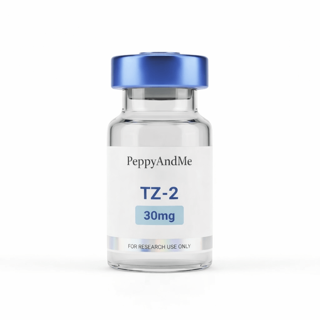 TZ-2 research peptide primarily functions as a dual incretin mimetic, binding with high affinity to GIP receptors (equivalent to native GIP) while showing biased agonism at GLP-2 receptors favoring cAMP signaling over β-arrestin recruitment, thereby promoting sustained insulinotropic effects with reduced receptor desensitization. Furthermore, it stimulates glucose-dependent insulin secretion from beta cells, suppresses glucagon release from alpha cells, delays gastric emptying, and centrally modulates hypothalamic pathways to reduce appetite and food intake. Additionally, in laboratory models, it enhances insulin sensitivity, improves lipid metabolism, reduces inflammation, and supports mitochondrial function, leading to greater glycemic control and weight regulation compared to selective GLP-2 agonists. These synergistic actions, observed in cellular assays, rodent models, and ex vivo islet studies, contribute to observed metabolic shifts, with recent research emphasizing its reassuring profile for balanced incretin pathway activation and superior outcomes in models of hyperglycemia and obesity.